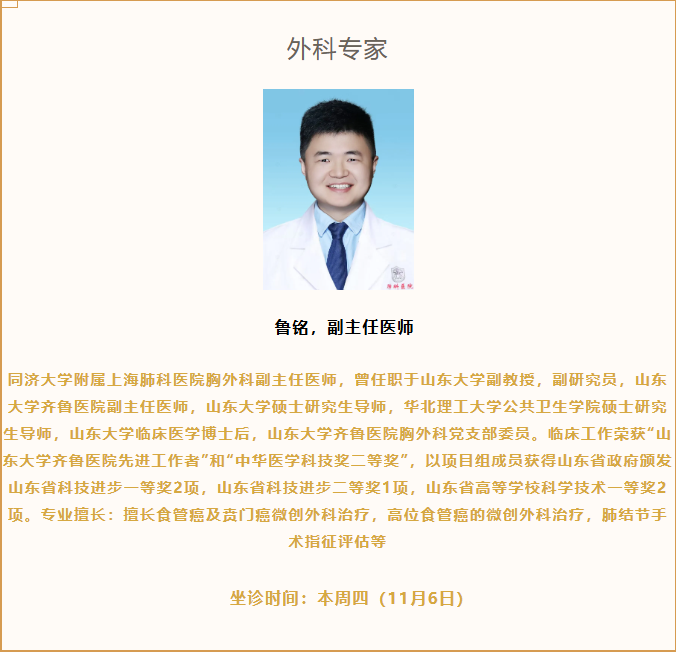 【专家来了】11月6日同济大学附属上海肺科医院专家鲁铭莅临涡阳县中医院外科