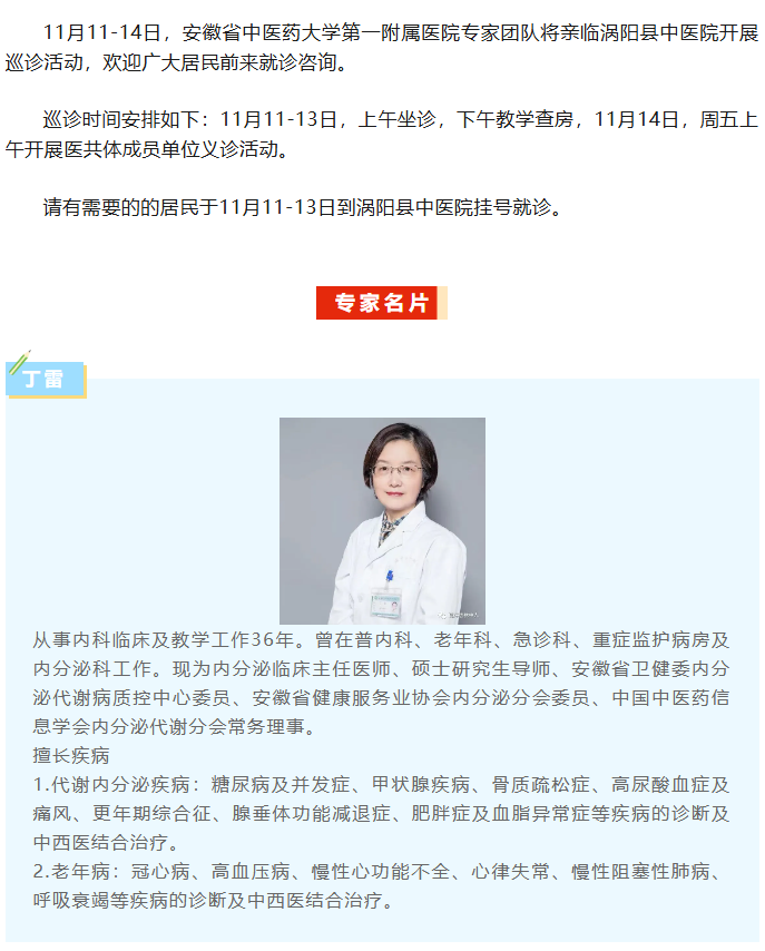 【专家来了】本周涡阳县中医院来专家啦!